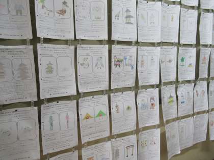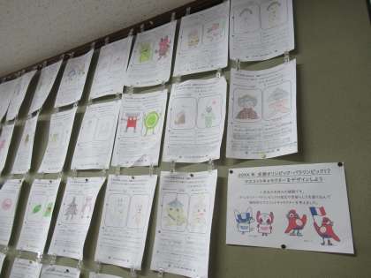 「もし、京都でオリンピックやパラリンピックが開催されることになったら...」夢が膨らむ中で取り組む1年生の姿が浮かびます。いろいろなデザインにくぎ付けになりました!