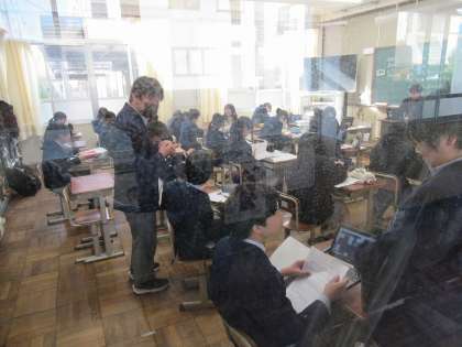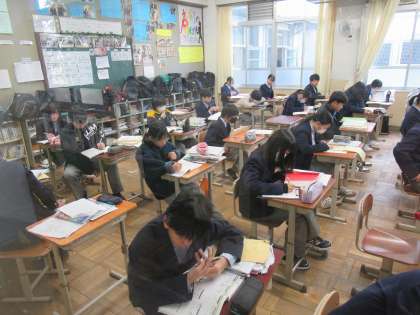 続いて、1年1組、2組、3組の様子です。素晴らしい!こちらもそれぞれに、少しの時間も無駄にしないように、最後の確認をしているようです。