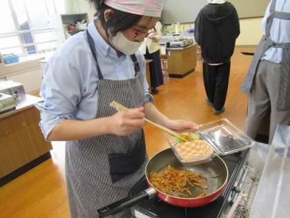 今回、お弁当のおかずとして「玉子焼き」「にんじんしりしり」「チンジャオロース」「しょうが焼き」を作りました。上手にできています。