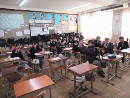 本日6限の学活では、各学年、思いを込めた取組が行われていました。1年生と2年生は、「3年生を送る会」に向けての取組です。