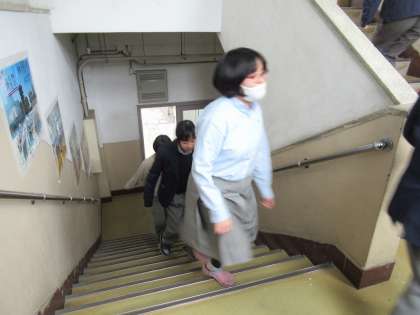 避難訓練では、教室のある1階から上の階へ順序良く移動していきました。静かに早く、しっかりできましたね。先生方からの話もしっかり聞いて、良い学習ができたと思います。