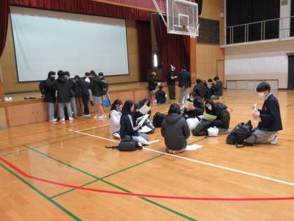 本日、3年では、授業終了後に、明日の公立中期選抜に向けての事前指導が行われました。体育館に集まった3年生の表情を見ると、すがすがしく、しっかり顔を上げ、前を見つめていました。ここまで本当によく頑張ってきました。そのことは、3年生の先生方全員がわかってくれていますよ。