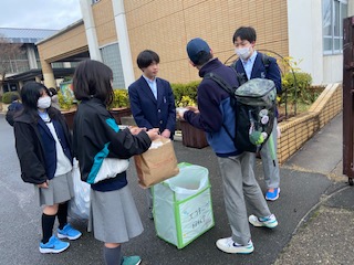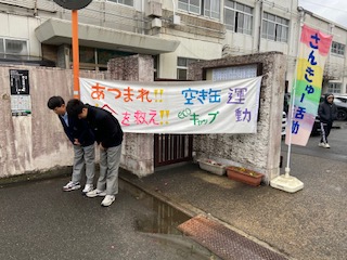 今週水曜日の朝に、「アルミ缶・エコキャップ回収運動」を行いました。毎月第1水曜日の朝に実施する恒例行事となりました。