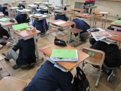本日、東日本大震災から14年が経ちました。学校でも、被害にあわれた方々や地域に思いをはせ、その教訓を生かすべくシェイクアウト訓練に取り組みました。
