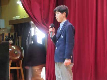 環境委員長Sさんの「初めの言葉」で、各プログラムのスタートです。ワクワクが止まらない様子の3年生です。