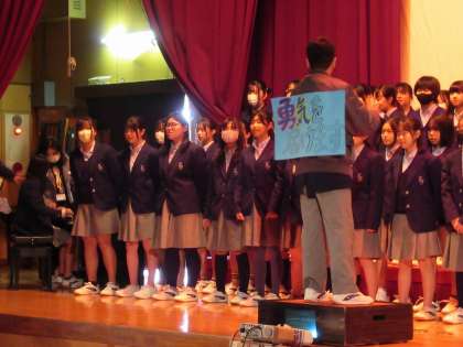 まずは1年生による合唱です。曲は「勇気100%」です。この曲好き!