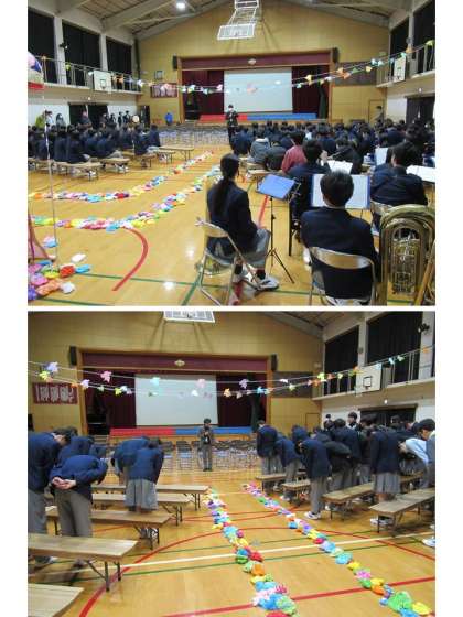 3年生が退場した体育館には、第3学年を代表して学年主任のI先生から、1、2年生にお礼の言葉が贈られました。