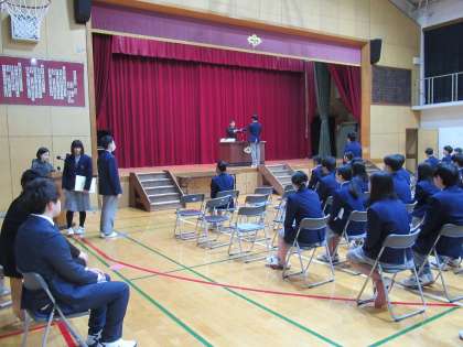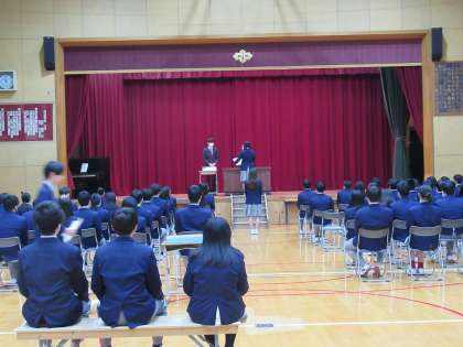 本日、卒業生と在校生代表が参加して、明日の卒業式に向けて、最終リハーサルを行いました。