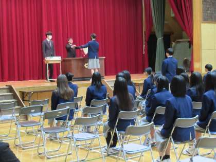 そして、在校生代表の生徒会本部役員の皆さんも、ほぼ座ったままなので結構きついはずなのに、緊張感を切らさず美しい姿勢を保ってくれていました。立派です。