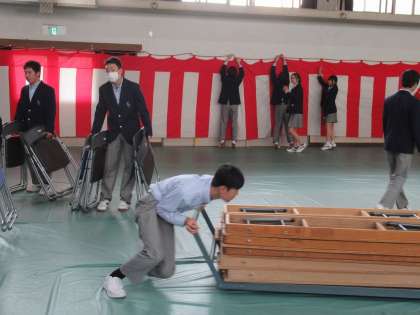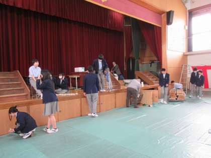 2年生は、会場設営です。力仕事から、細かな作業まで、本当によく分担して進めてくれました。