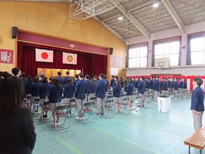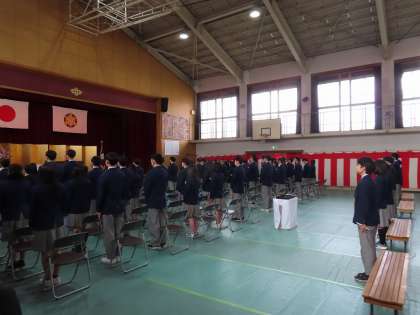 厳粛な空気が感じられる、見事な整列です。在校生代表の生徒会本部役員の皆さんも、本当に素晴らしかったよ。ただただ背筋を伸ばし、先輩方の晴れの舞台を見守ることが、最高の祝福であることを、彼らはわかってくれていました。ありがとう!
