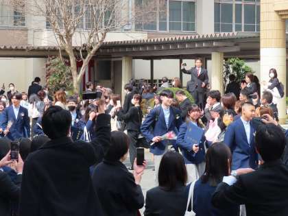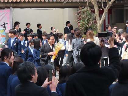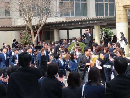 あちらこちらからかけられるお祝いの声に、笑顔があふれる卒業生の皆さんです。