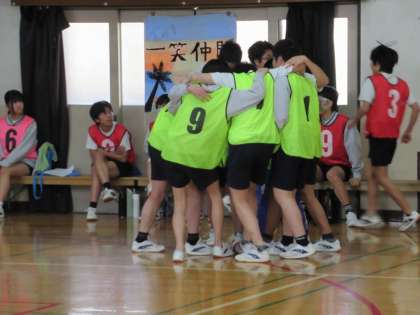本日、いよいよ2年生も球技大会の日を迎えました。実施時刻になると、すぐさま体育館から歓声が聞こえてきました。3年生や1年生に負けないくらいの気合いが感じられます。