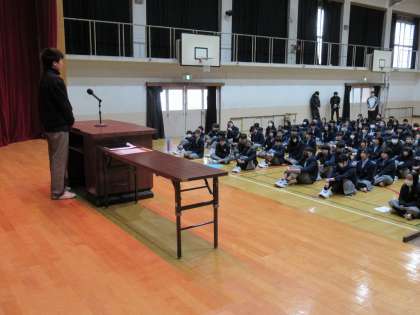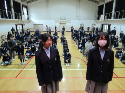 1年生と2年生による修了式では、多くの表彰や生徒会本部からのお話がありました。本部役員代表のKさんの「カッコいい先輩になりましょう!」が良かった。新入生の皆さん、今から楽しみにしていてくださいね。