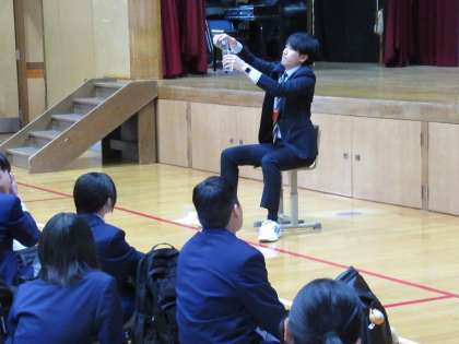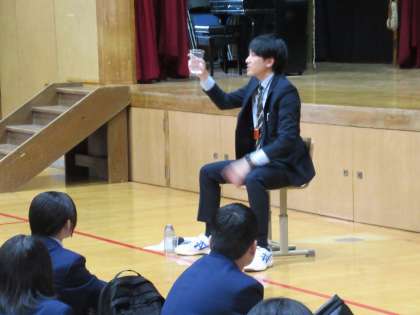 そのお返しとばかりに、Y先生からは「心のコップ」の話をしていただきました。「心のコップを上向きにしていると、人の話が素直に聞けてコミュニケーションがうまく取れる。」というお話でした。いいですね。