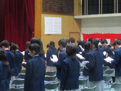 卒業式に続き、在校生代表で参列してくれた生徒会本部役員の皆さんも素晴らしかった。終始、背筋を伸ばし、しっかり、そして温かなまなざしで、新入生を後ろから見守ってくれていましたね。