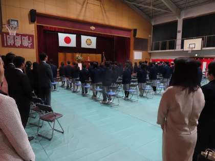 校歌斉唱もリードしてくれました。新入生の皆さんも歌詞を見ながら、口ずさんでくれていました。新しい九条中のスタートを感じる瞬間でした。