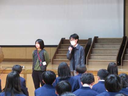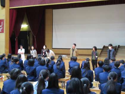 そして、3年教職員の皆さんの登場です。こちらも個性的で、皆さんとお話してみた〜い!代表で旭先生からエールを送っていただきましたね。よかった!
