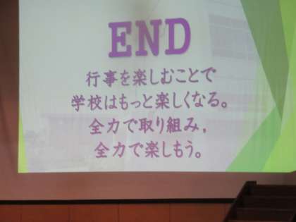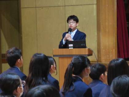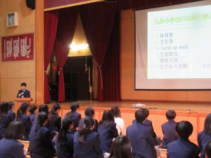 文化祭や体育祭はもちろんのこと、Level up week、生徒総会、それに「たてわり活動」や「九条カンファレンス」など、九条中特有の取組についてもわかりやすく説明してくれました。ますます楽しみになります!
