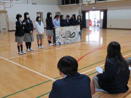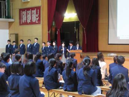さあ、お待ちかね「部活動紹介」です。それぞれの部が、その特徴をいっぱいに出した紹介を行ってくれました。