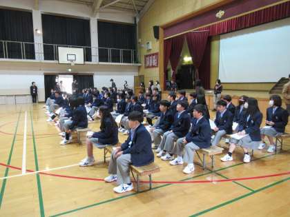 女子ソフトテニス部は、いつもの円陣からの掛け声とともに、テニスコートを再現した迫力あるプレーを披露してくれました。
