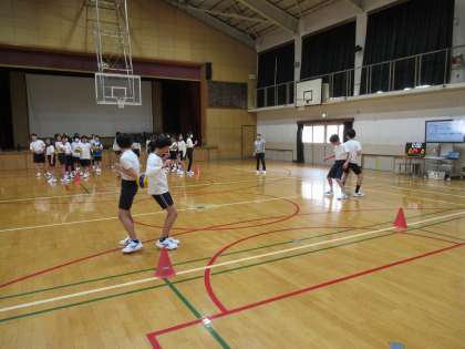 1年2組は体育の授業です。「体力の要素」を学んだ上で、サーキット種目に挑戦していきます。順番待ちの1年生が、仲間に声援を送っている姿にも感動しました。