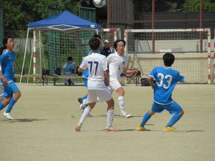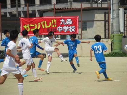 懸命の守りで相手にシュートを決めさせない九条中は、ワンチャンスをねらいます。