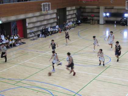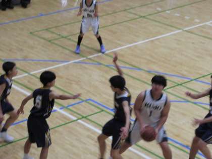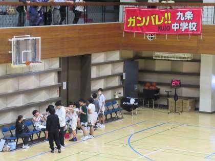 第3クォーター終了時には、この日一番の点差を付けられます。それでも最後まであきらめない九条中は、それぞれが積極的にシュートを放ちます。その調子!