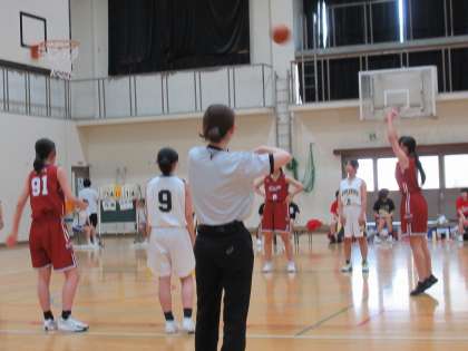 その後、相手チームにスリーポイントシュートも飛び出しますが、Oさんの連続シュートやKさんのフリースローが決まって、第1クオーターは5−16となります。