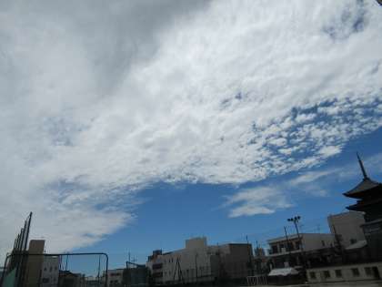 写真は、本日お昼に九条中から見上げた空の様子です。西から青空が広がっていきました。その後は日差しも優しく、生徒の皆さんの活動に協力してくれているようでした。