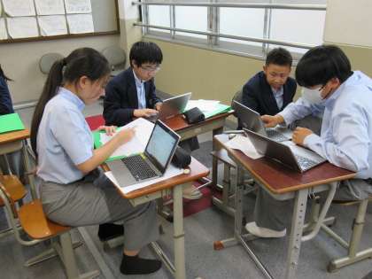 次に、2年生のフロアに上がると、総合的な学習の時間でした。こちらは、引き続き、高校訪問に向けての事前学習です。