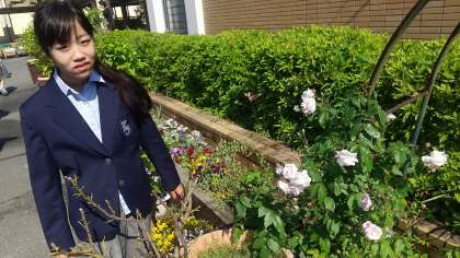 また、先週は、1つだった薔薇も、今日はこんなに花を付けています。Hさんに、教えてもらいました。ありがとう!