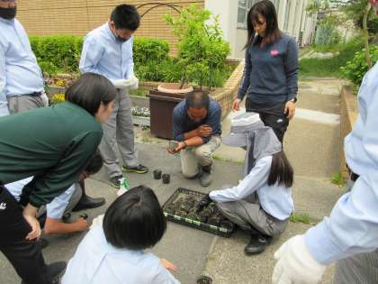 今日は苗と雑草とを見分けて、雑草摘みを行いました。うっかり苗と間違いそうになるくらい葉っぱの形がよく似ているので、『..これは雑草?..苗?』みんな一生懸命に見極めながら熱心に作業していましたね。