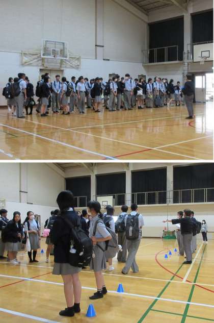 6限目、3年生は明日の出発に備えての前日指導を体育館で行いました。学年単位の移動は言うまでもなく規則正しい集団行動が必須です。色々な場面での隊形の確認や新幹線、ジェットフォイルなどの乗車、乗船時の隊列や実際に荷物を持った状態での移動など、入念なシミュレーションができていました。最後は、学年主任のN先生から、明日の出発に備えての心構えなど盛りだくさんな内容でした。これで準備万端ですね。
