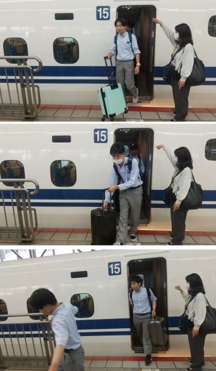 現地取材班の学校長より『博多到着!駅のホームに降り立った一行を、とんこつラーメンのいい匂いが迎えてくれました。』
