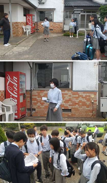 『バスに揺られてほどなく、今日からのお宿に到着しました。優しさがにじみ出るようなお宿の方の出迎えを受け、3年生もとっても礼儀正しく、そして元気に挨拶してくれました。代表のKさん、Sさん、ありがとうございました。』..現地取材班の学校長より