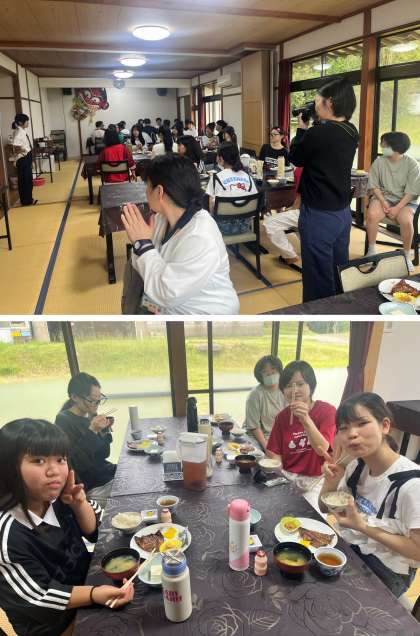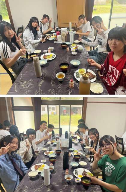『元気いっぱい!! 』みんなで楽しく二日目を迎えた様子が伺えます。今日の活動に備えて、しっかり食べてエネルギーチャージして下さいね。
