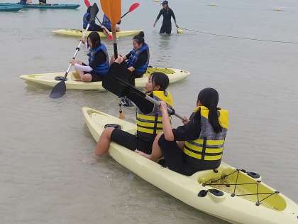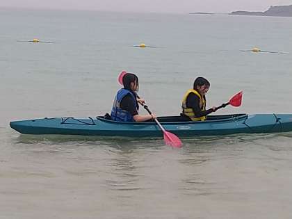 こちらは、シーカヤック体験です。ペアで、グループで挑んでいきます。