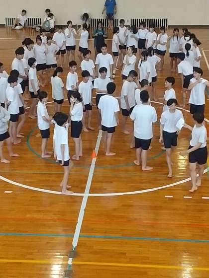 全体レク、2つめのプログラムは「人間パズル」です。こちらは、人の並びで文字を描くものです。