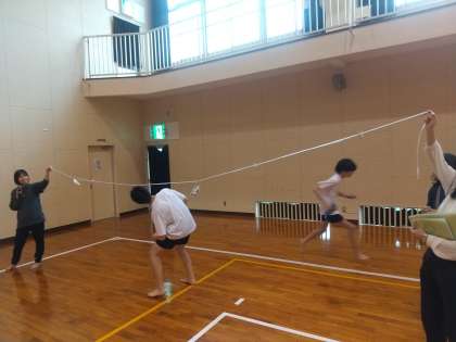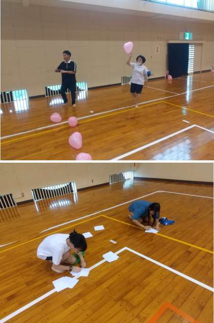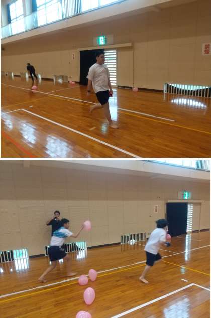 まずはお菓子食い、次に風船運び、そして紙飛行機飛ばし、最後はマシュマロキャッチでバトンパスです。