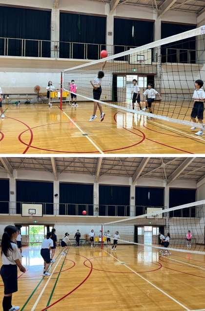 1年生 ソフトバレーボール大会 熱戦の様子と対戦を終えた清々しい雰囲気の両クラス