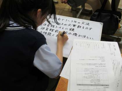 たてわりクラスを回っていると、生徒の皆さんが主体的に活動してくれていることに気付きます。その中で、先輩から後輩に伝える部分と、1年生や2年生ならではの考えが活きる部分がうまくかみ合っていくといいと思います。楽しみです。