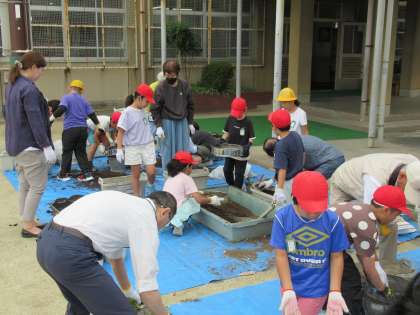 たくさんの地域の方々がお越しいただき、児童の皆さんと触れ合いながら、花植えをご指導いただきました。ありがとうございました。