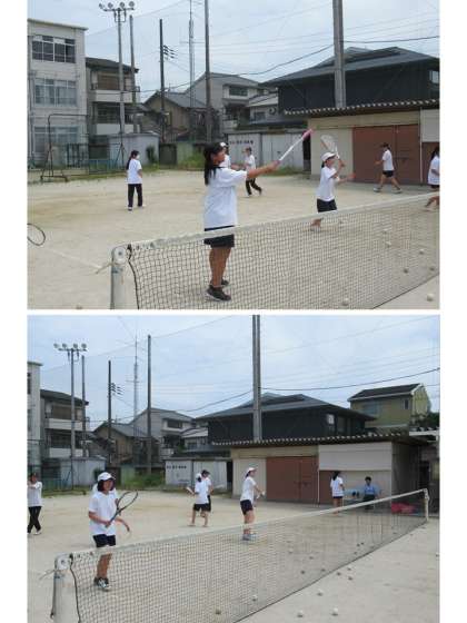 そしてグラウンドでは、サッカー部が練習試合をする隣で、ソフトテニス部が躍動感あふれる練習を行っていました。