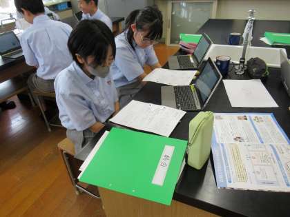 2年生の皆さんの熱心に楽しみながら学習している様子に感心しました。ポスターセッション当日が、今から楽しみです。期待しているよ!