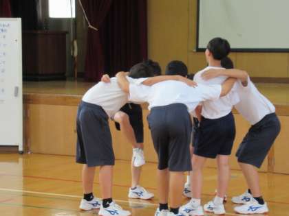試合開始を前に、それぞれに円陣を組んで、心をひとつにしていきます。「絶対勝つぞ!」「おう!」