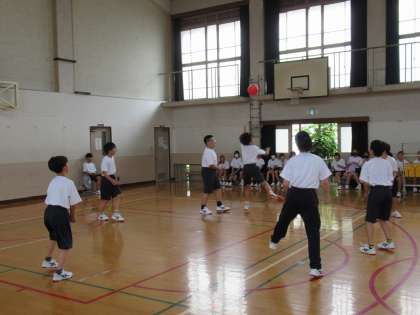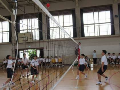 特別ルールで行われたバレーボールですが、基本的なプレーを随所に決めてくれます。三段攻撃も披露して、体育の授業の成果が感じられます。いいぞ!