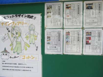 (写真は、マスコットキャラクターと生徒会新聞です。)