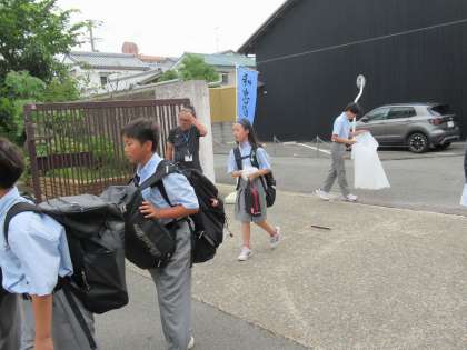 この回収運動は、生徒会の取組で、みんなで進めてくれています。お世話をしてくれる本部役員の皆さんとのやり取りを見ていてもとってもいい雰囲気です。
