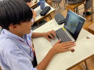 まず導入では、「自分が生きていくうえで大切にしたいこと」を思考ツールであるダイヤモンドランキングを用いて表現しました。自由、お金、健康、勉強、平和、勝利、優しさ、友情、愛情、趣味といった10個を埋めていき、理由も含めてグループで交流しました。プリントを用いて交流する色クラスもあれば、GIGA端末を用いてロイロノートで共有している色クラスもありました。